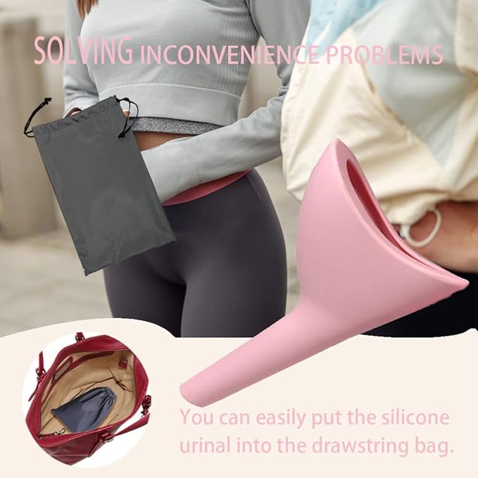 Ladies Urinal, Girls Silicone Urinal Portable, for Outdoor Activities, Camping, Reusable with Waterproof Bag