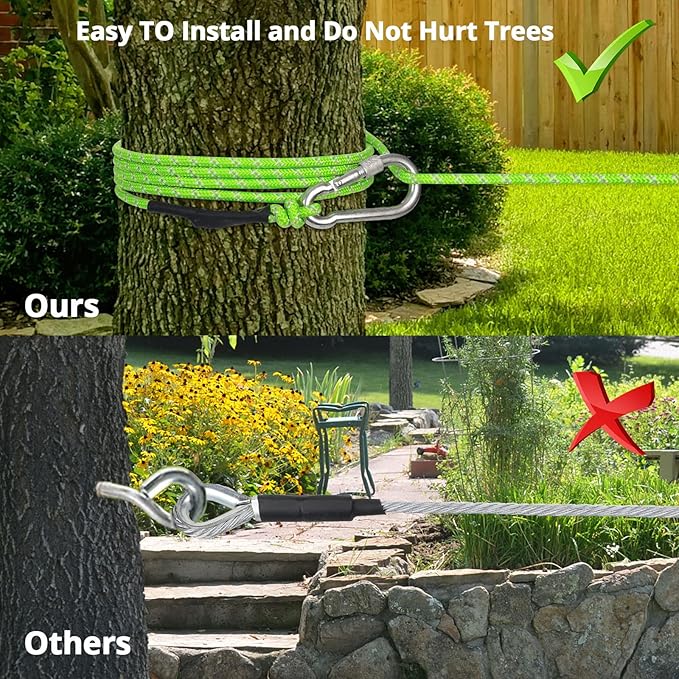 - 🐶EASY TO INSTALL & REMOVE:Dog trolley system is specially designed for dog outdoor events,which can be installed quickly by one person within 5 minutes.Set up anywhere you want, between two trees or other anchor points.Whether in parks, gardens, forests, mountains or your own yard,you can take your pets together on all kinds of adventures