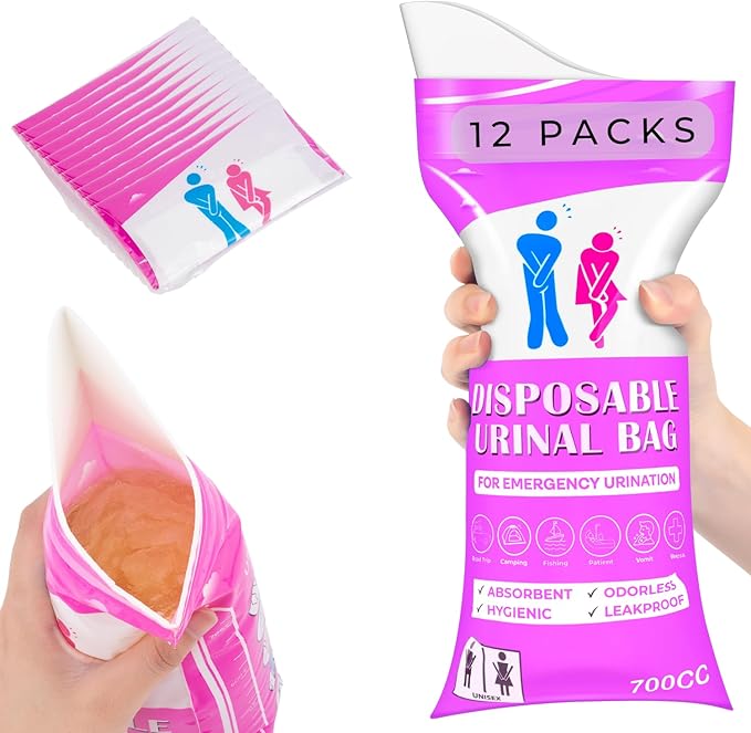 Disposable Urine Bag,12 Packs 700ML Disposable Urinal Bag for Travel, Emergency Portable Pee Bag and Vomit Bags, Toilet Bag for Camping, Traffic Jams, Pregnant, Patient, Kids (Pink - 12)