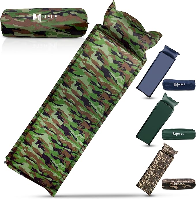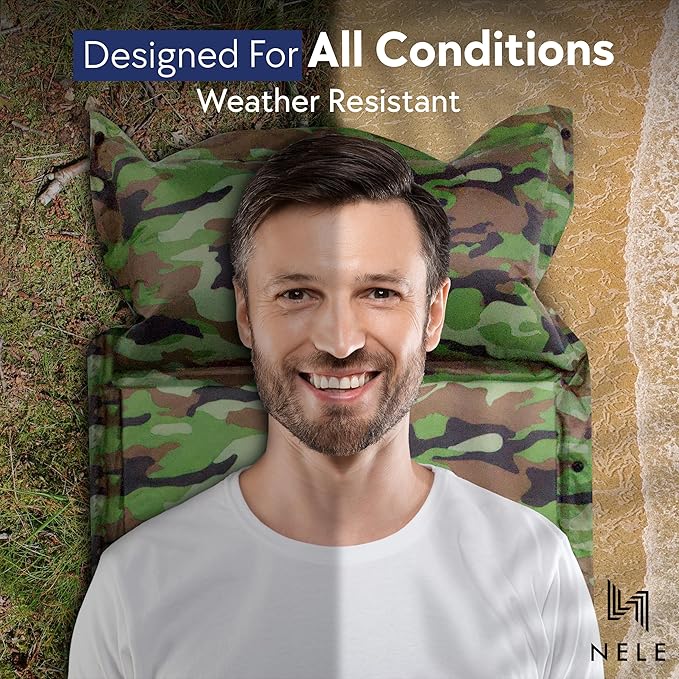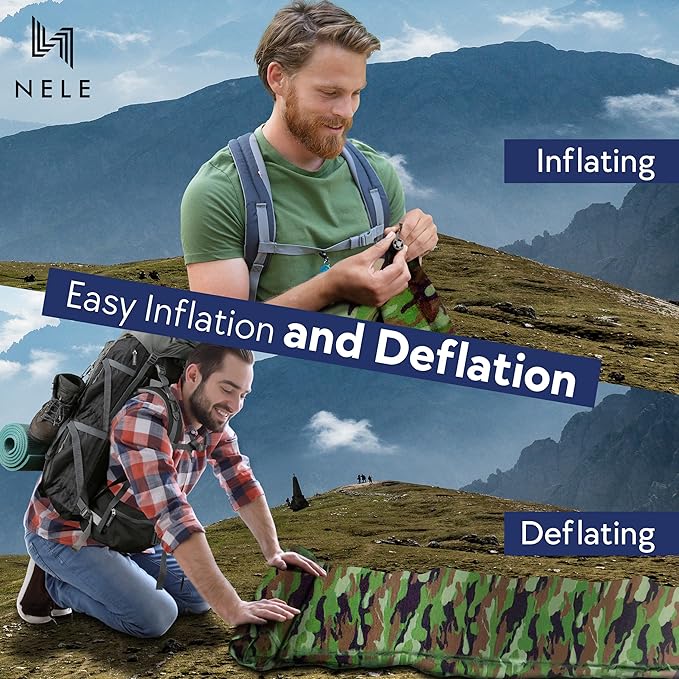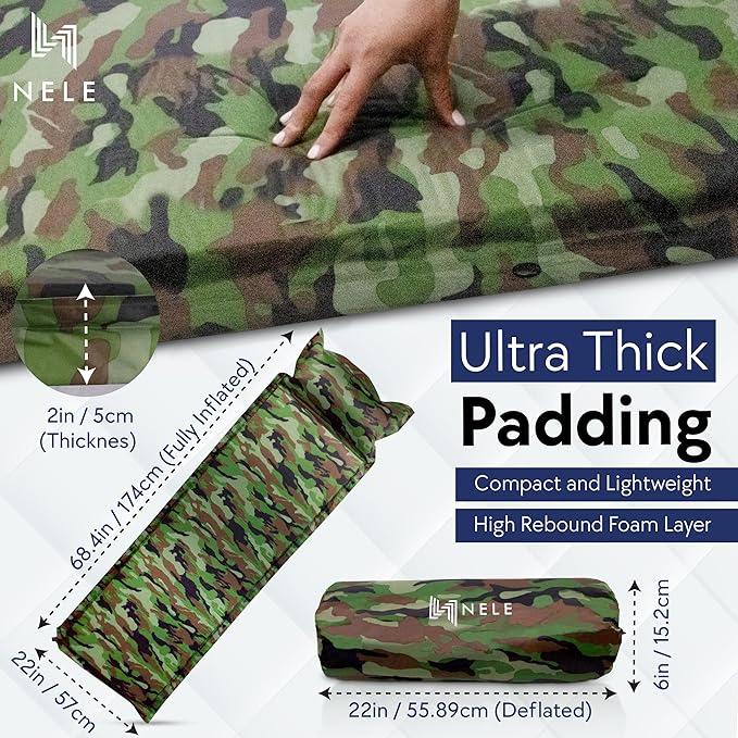 NELE Self Inflating Sleeping Pad 2inch Lifestyle Pad (Camouflage Green)