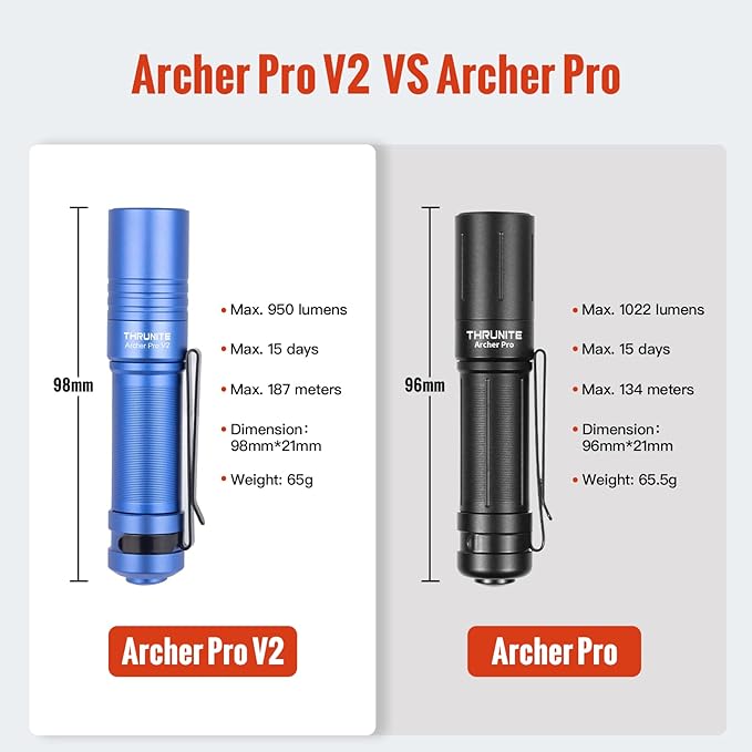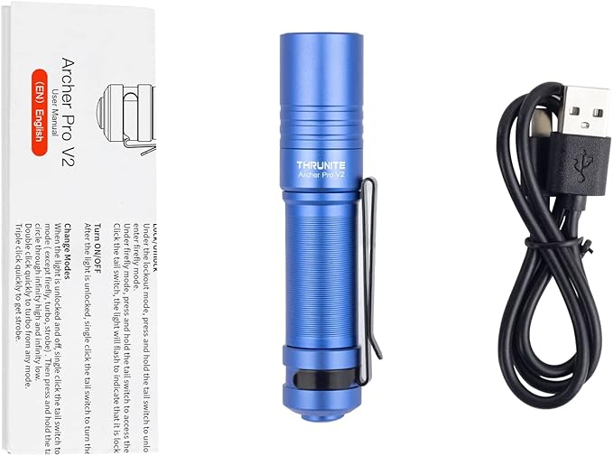 ThruNite Archer Pro V2 EDC Flashlight - 950 Lumens, USB-C Rechargeable, Tail Switch LED Penlight for Camping, Outdoor & Emergency - Cool White (Blue)