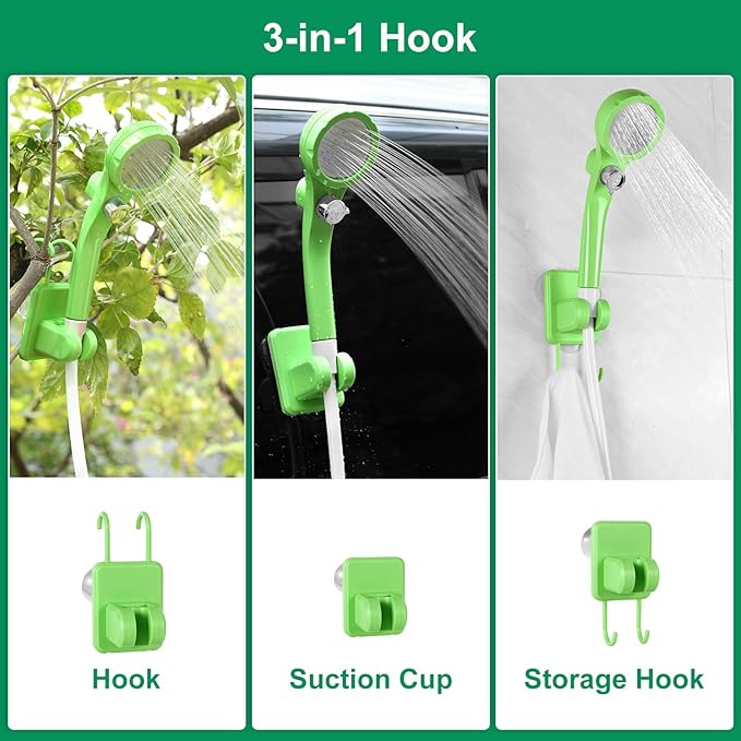 - ✅ Compact and Portable: Portable shower kit weights only 2.3LB, mesh storage bag, convenient to carry and store. Provided suction cup can fix the shower head on any smooth flat surface. Hook lets you hang the showerhead safely on trees for a convenient shower.