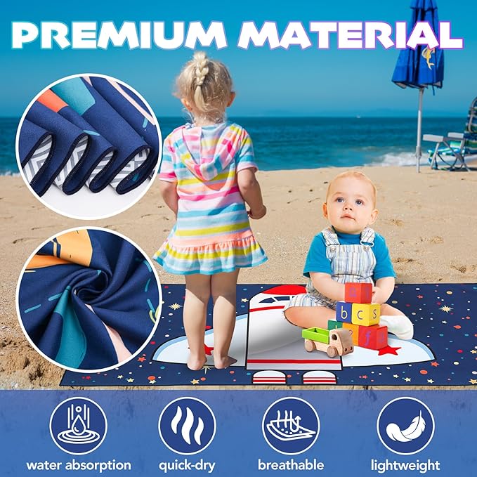 - 【Sand Free】The beach towel can be directly covered on the sand or grass, when not in use you can quick shake off the sand due to the smoother surface. What’s more, the microfiber beach towel is also soft and comfortable to touch.