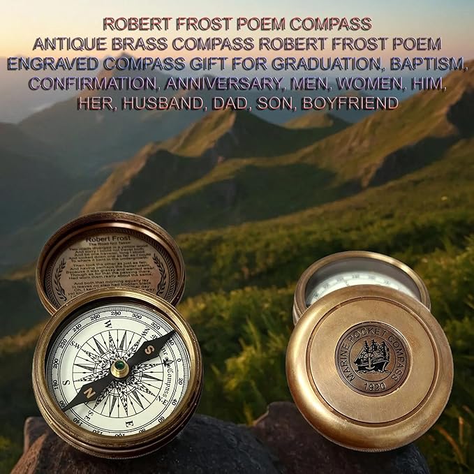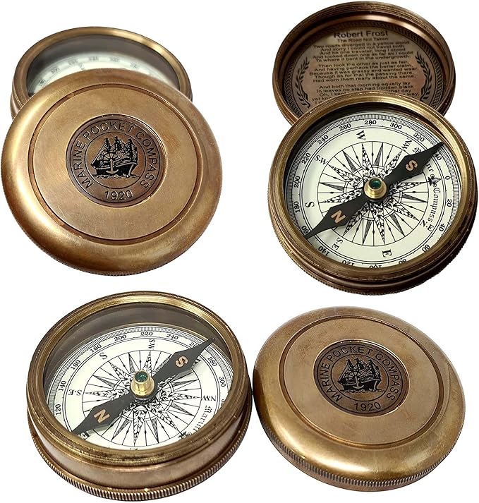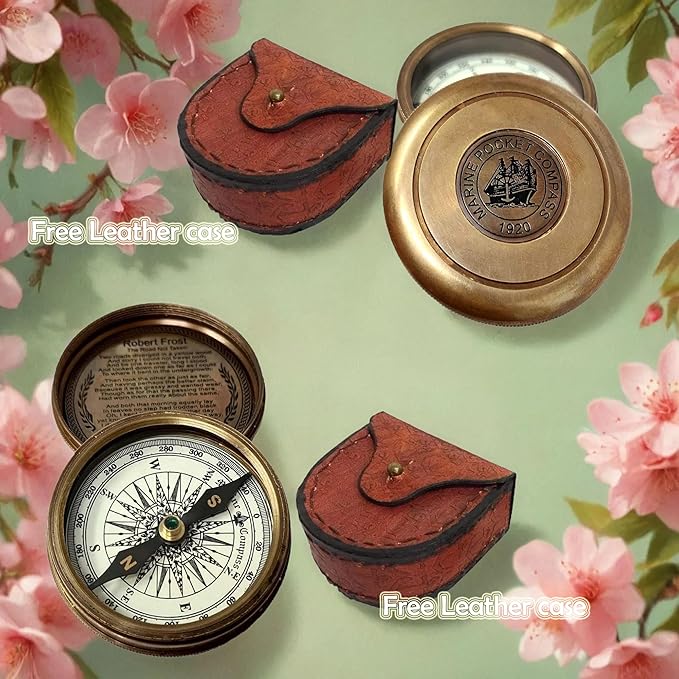 Engraved Brass Compass, Antique Nautical Vintage Directional Magnetic Compass, with Famous Scripture Quote, Baptism Gifts with Leather Case