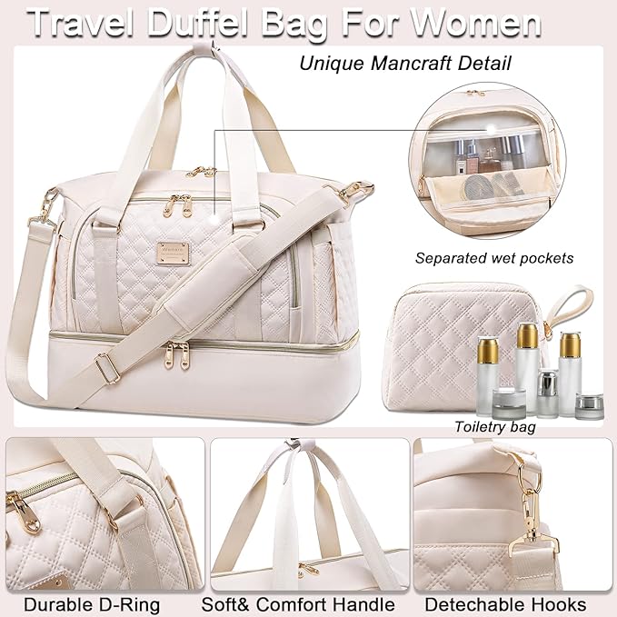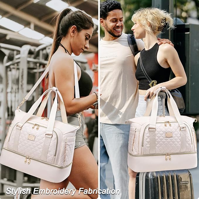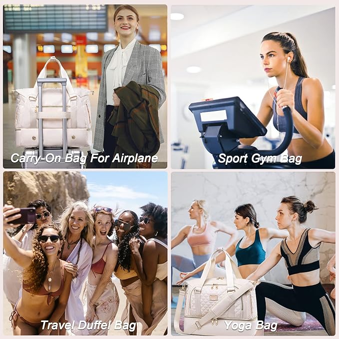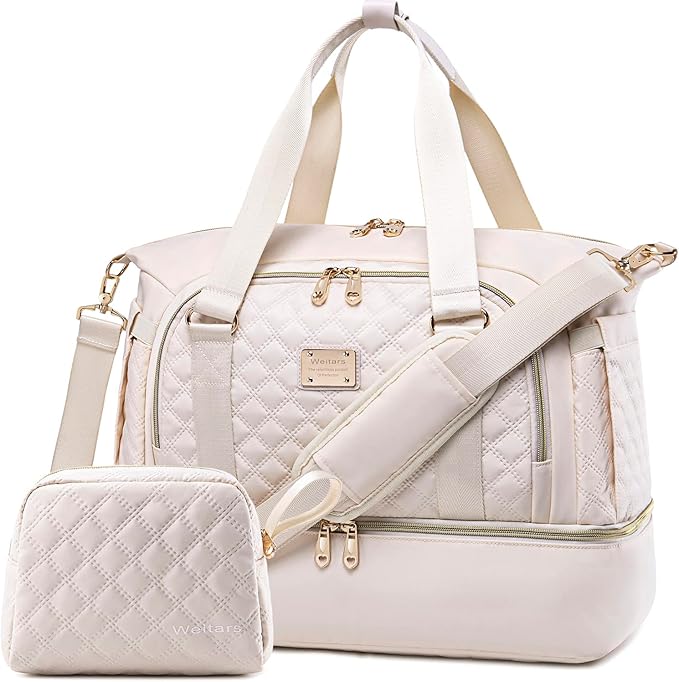 Weitars Gym Bag For Women,Travel Duffel Bag Weekender Bag,Sport Bag With Shoes Compartment And Wet Pocket,Large Carry On Bag Overnight Hospital Bag For Travel,Shopping (Beige)