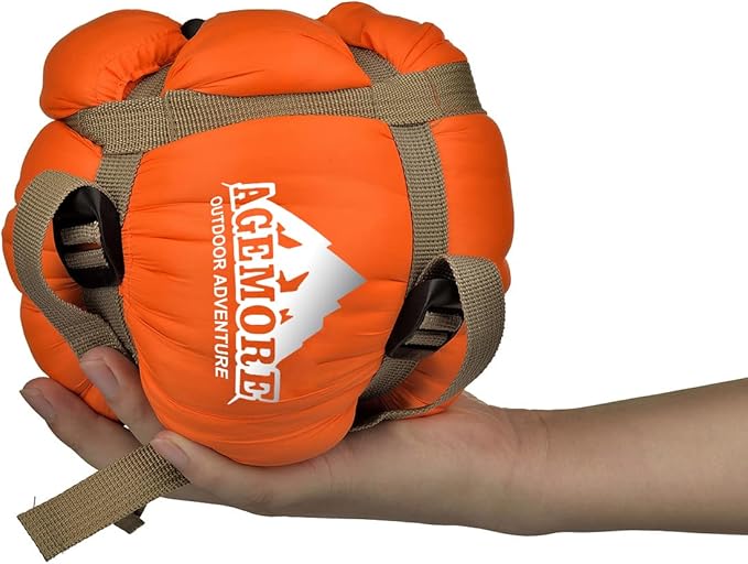 - SUPER SOFT AND COMFORT: The AGEMORE ultralight sleeping bag is made by waterproof and durable 400T polyester shell, soft breathable Polyester pongee liner, and premium imitation silk cotton filling to block the heat and give you a comfortable outdoor sleeping night. Great for camping, backpacking, hiking or traveling in summer and warm weather in spring or fall over 59 degree.