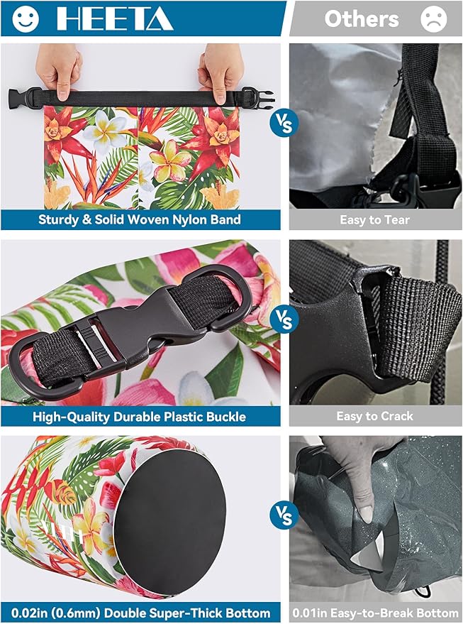 • Durable - Made of 0.02 in (0.5 mm) thick upgraded wear-resistant PVC material, it's suitable for all kinds of outdoor activities. Waterproof bag is well adapted to various weather and environment.