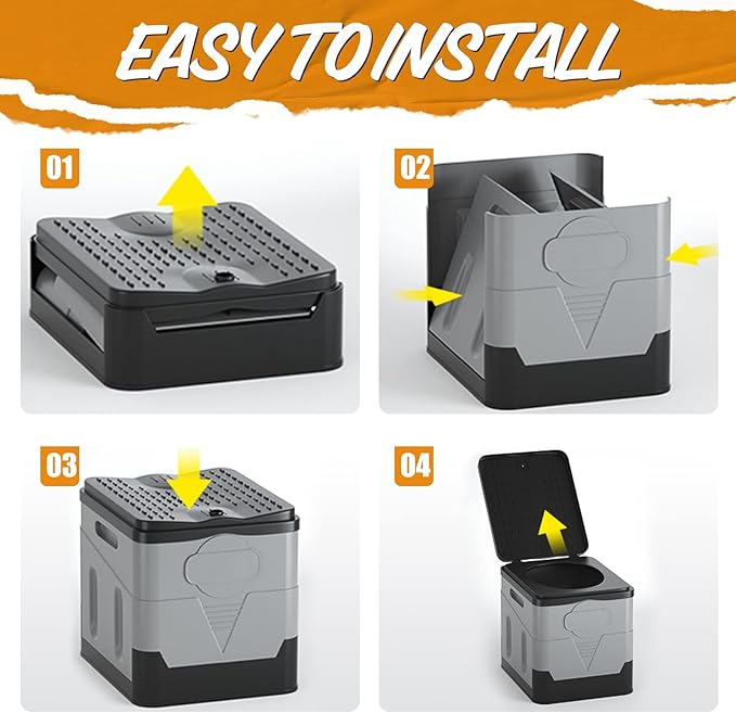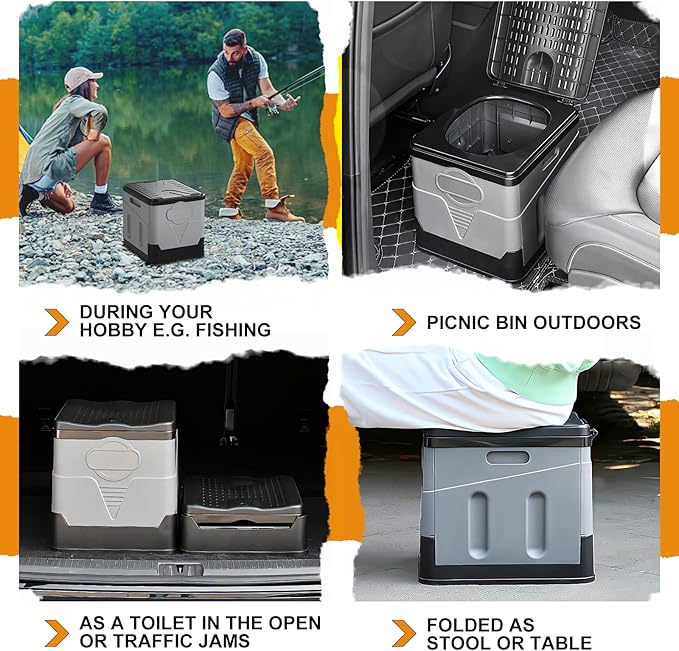 - Multi-use: Functional cover design, makes you free to switch various modes of use, as a camping toilet, a stool, a storage box or a trash can. It is not only a perfect portable toilet for camping, hiking, long trips, fishing, boating, traffic jam etc, but also a good travel potty for adults and kids.