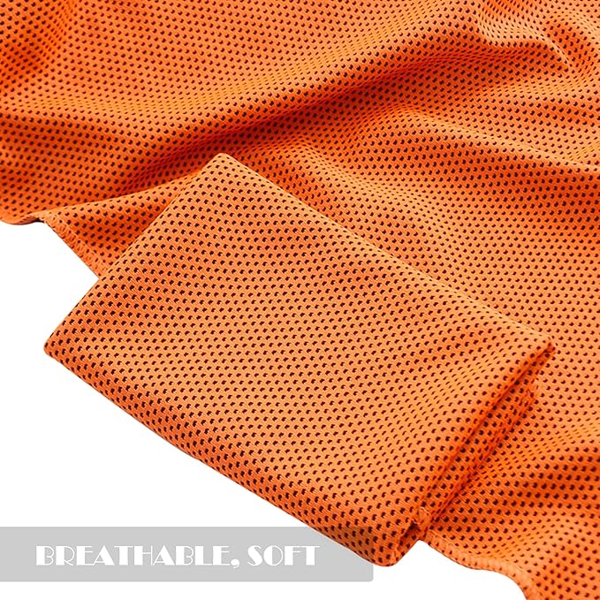 10 Pack Cooling Towels Bulk Microfiber Ice Towel Quick Dry Breathable Chilly Sweat Towel Stay Cool Towel for Neck Face Yoga Gym Workout Running Pilates Beach with Carabin Bag, 40x12'', Orange
