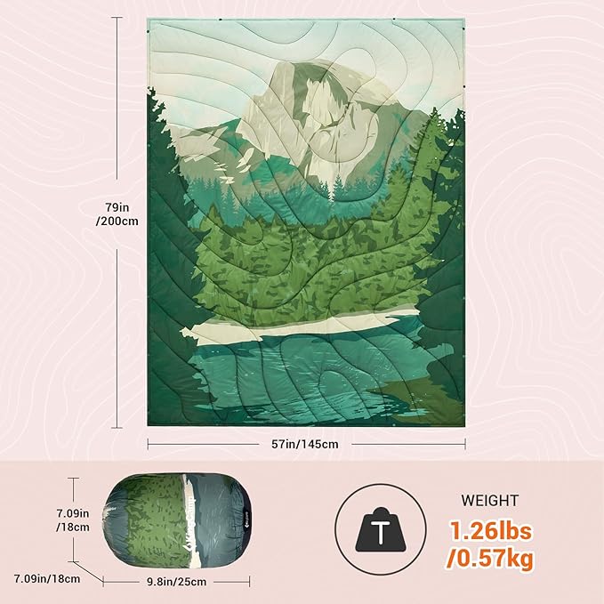 - 【LIGHTWEIGHT AND PORTABLE】: Weighing only 1.26lbs and featuring a lightweight design, this camping blanket is easy to pack and carry. Toss it in your backpack and bring it with you on your next adventure, whether it's a plane, train, or car ride.
