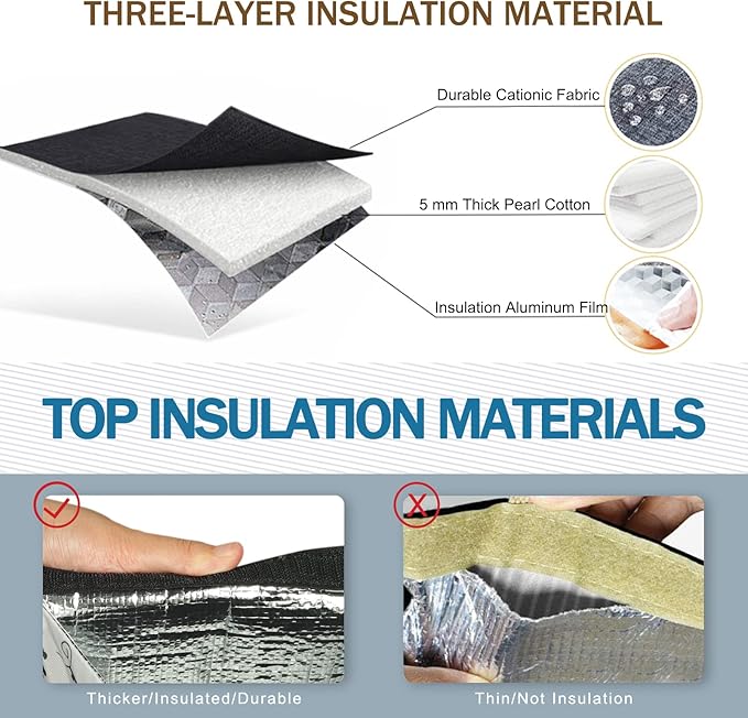 - √[Thermal Material] The outer part of the lunch bag is made of durable cationic fabric, and the inner part is made of aluminum foil + 5mm pearl cotton, which is an insulation material, 100% non-toxic, no BPA. The heat insulation lining make this thermal lunch bag can keep food and beverages cold/hot/fresh about 6 hours.