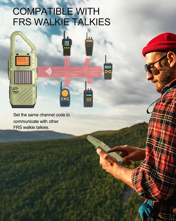 Rechargeable Emergency Radios Walkie Talkies for Adults with FM/NOAA, Weather Alerts, LED Flashlight, and Solar Hand Crank - Long Range 2 Way Radios with USB Charging and SOS Alarm