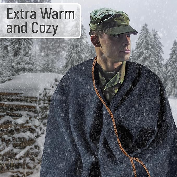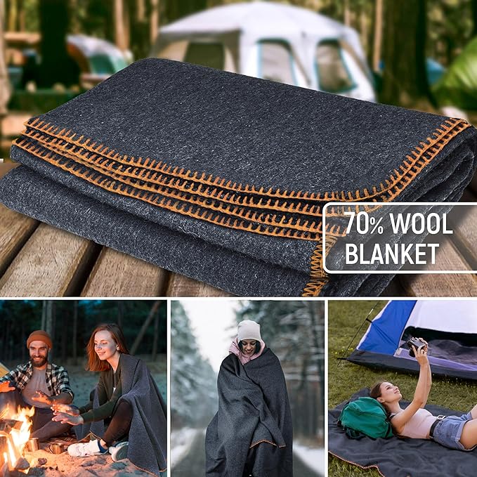 - 🛖【MULTI-USE WOOL BLANKET - HOME TO CAMPSITE】 This versatile Wool Blanket serves multiple purposes: Car Blanket, Picnic Blanket, fire pit companion, indoor fireplace comfort, and Camping Blanket. Perfect for cozy nights at home or outdoor adventures, it offers comfort and warmth while meeting military-grade durability standards.