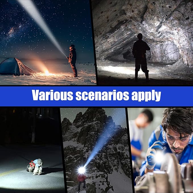 - 【LIGHTING MODES& ADJUSTABLE HEAD】This flashlights high lumens rechargeable has 5 lighting modes: High-Medium-Low-Strobe-SOS. You can use it flexibly in different scenarios. Deep press 2-3 seconds under any modes to turn off without cycle through all modes. According to the actual needs, you can adjust the head of the rechargeable flashlight, to choose a wide range of light or long-range light.