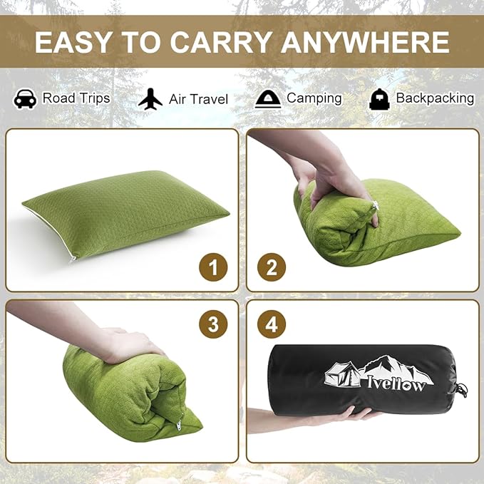 - 【Easy to Carry Travel Pillow】Our premium travel pillow is fully adaptable to all kinds of trips, like traveling, camping, fishing, backpacking, hiking, beach, festival, or other outdoor activities. Whether you're sleeping on a plane, a hammock, a beach, in a car, RV, or under a tent, hotel for a "Power Nap" in the office or on the couch, our travel pillow will give you a great night's sleep wherever you lay your head.