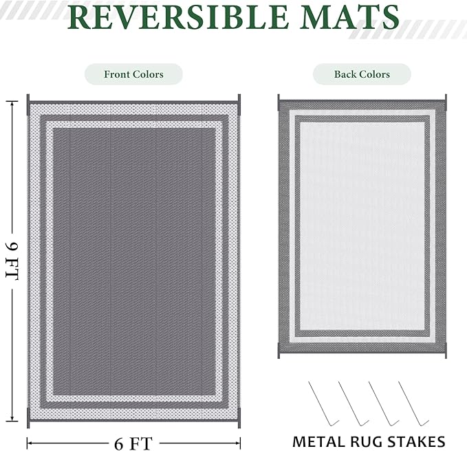 - HIGH-QUALITY:The outdoor reversible rug is made of high-quality and recyclable materials. The rug's fabric is long-lasting, ensuring that you get the most out of your investment. Every detail of its creation, from its manufacturing to transportation, has been made with the quality in mind.