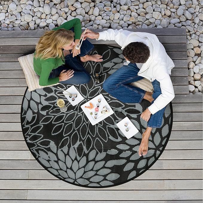 Anidaroel Round Outdoor Rugs 6' for Patio Clearance, Waterproof Reversible Tropical Plastic Straw Patio Rug, Outdoor Area Rug Floor Mat for RV Camping, Porch, Pool Deck, Balcony, Picnic(6ft)