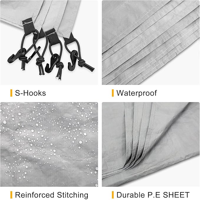 - 【DURABLE】: The tent tarp was made of 210T Poly with superior waterproof coating, which is 100% waterproof.