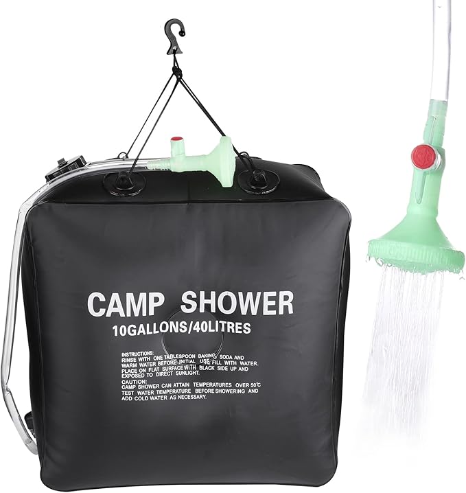 Camping Shower Protable Outdoor Solar Shower Bag 40L/10 Gallons (Black, 40L)