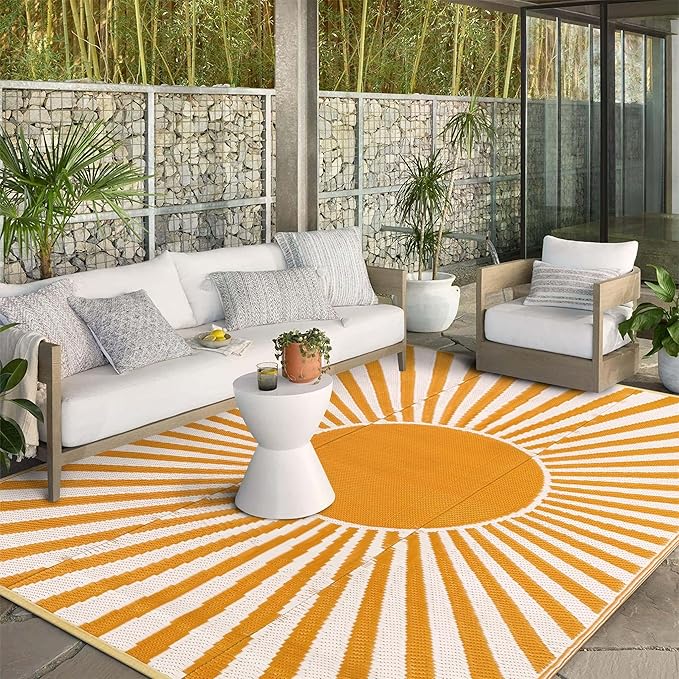- [Eye-Catching Reversible Mat] Get two different looks in one with our reversible patio rug, extending its lifespan and exquisite patterns with new shades can allowing you to refresh your space with a quick flip