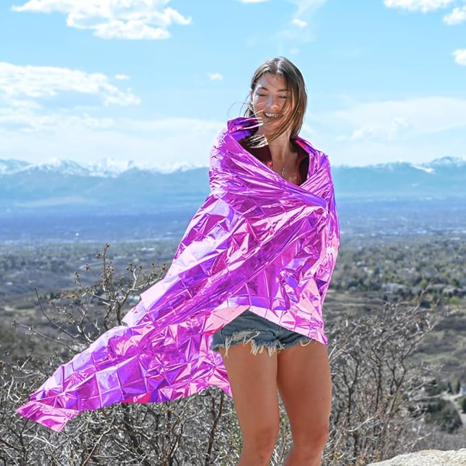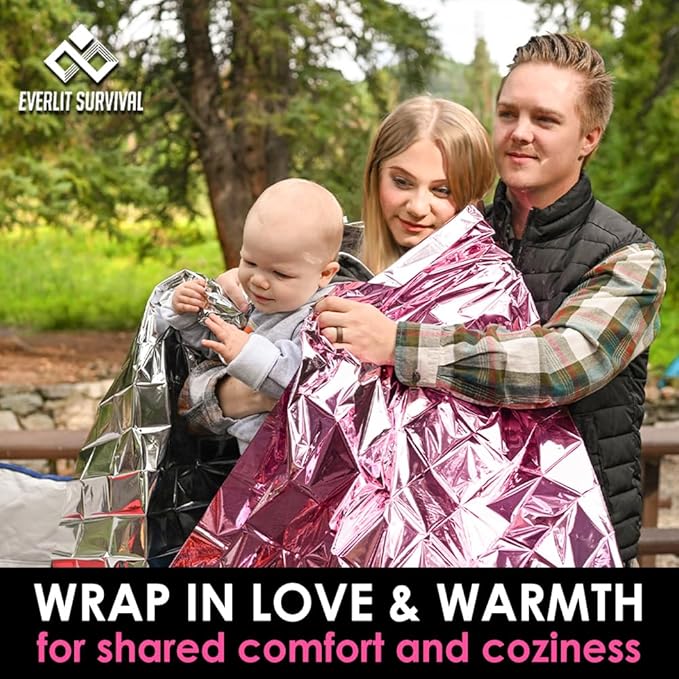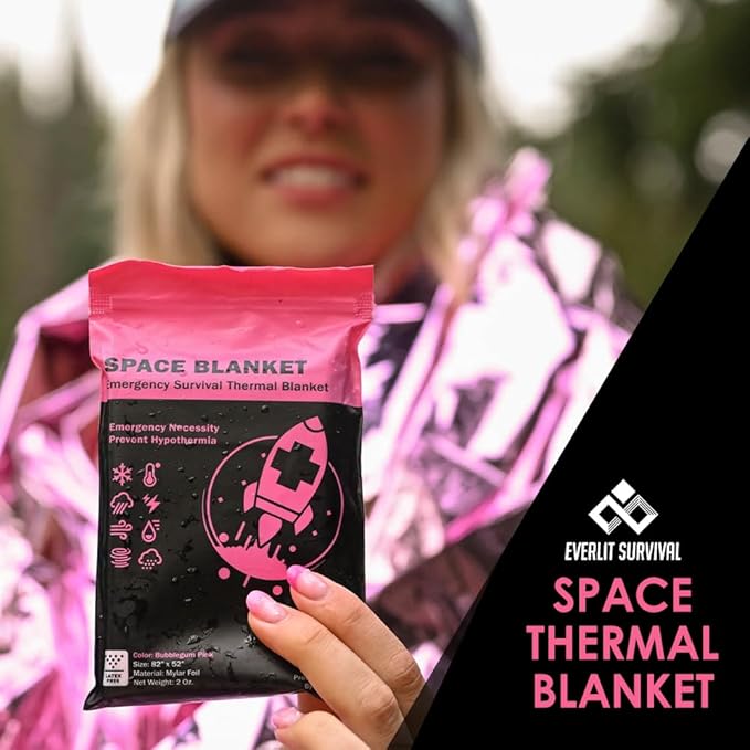 EVERLIT Survival Emergency Mylar Thermal Blanket, Foil Space Blanket Designed for NASA, Body Warmer Blanket for Outdoor, First Aid, Camping Gear, Hiking Travel (4 Pack, Bubblegum Pink)