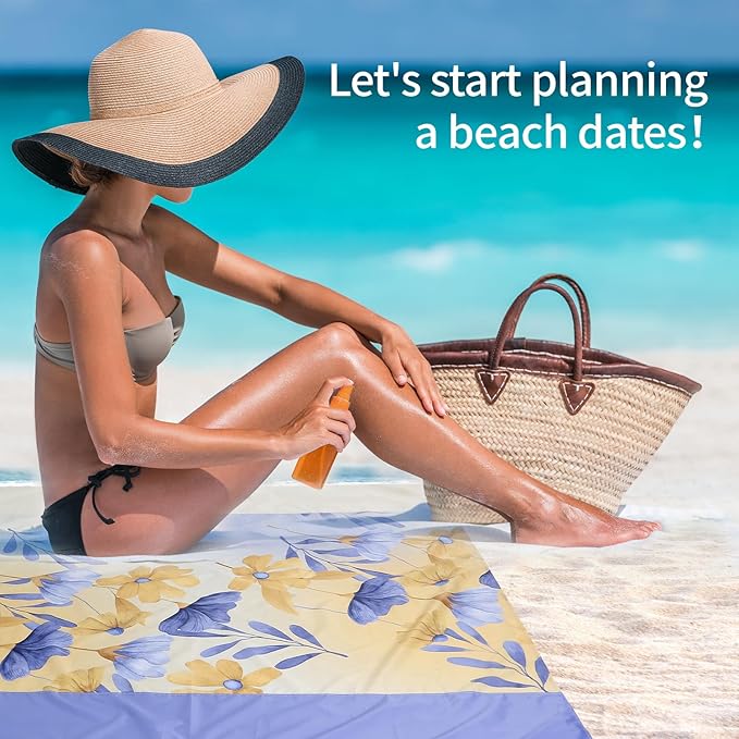 - 🌴【WATERPROOF & SANDPROOF & SCRATCHPROOF】: The beach blanket can't be punctured thanks to the high-quality, lightweight polyester material. Just shake the beach mat to have the sand and water droplets slide off with ease. For your upcoming trip, the beach mat may be conveniently machine cleaned and dried.