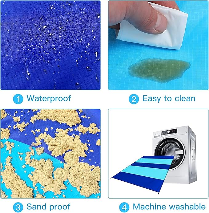 - 🌴Sandproof Beach Mat Blanket:Effectively prevent water and rips from damaging it,You just need to shake it gently that sand won't stick to the mat, Keep the Blanket clean at all times,Washed by washing machine or by hand.