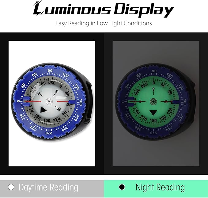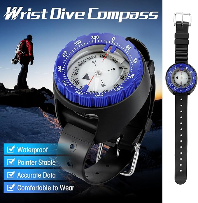 - SCUBA DIVING COMPASS - Our latest dive compass provides 50m waterproof performance for underwater navigation and includes a wide wrist mount strap to wear on your wrist while diving for hands-free navigation that's easily accessible.