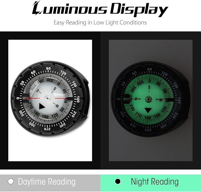 - EASY-TO-READ - Our compass has easy-to-read numerals on a phosphorescent compass card and a large side-reading window for gun-sight accurate navigation. With Luminous Display for easy reading in low light conditions.