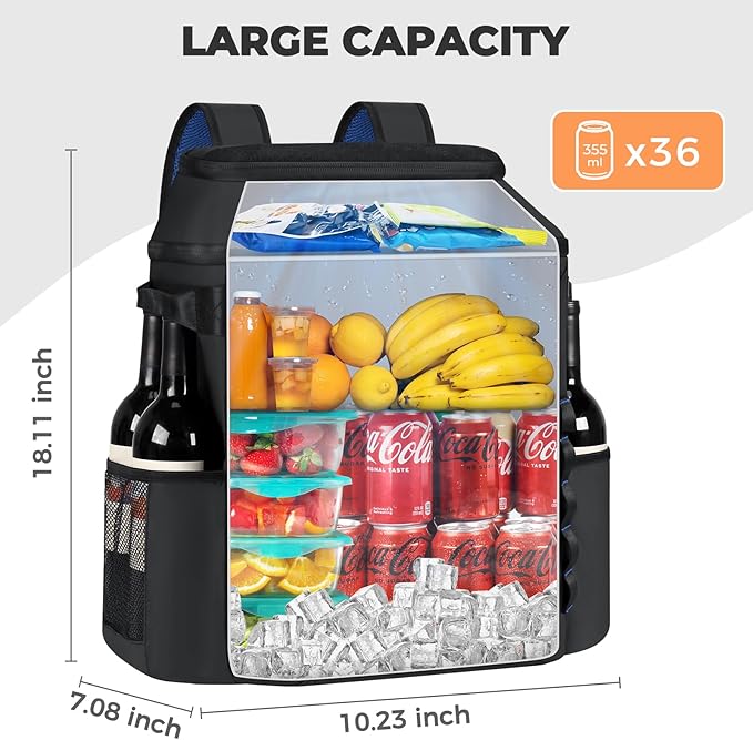 - Extra-large Capacity - The heytrip cooler backpack's spacious storage compartment can hold up to 36/54 cans of coke, providing ample space for your meals, ice drinks, beer, snacks, fruits, and other essentials. Keep your drinks icy and your food fresh while enjoying the great outdoors.