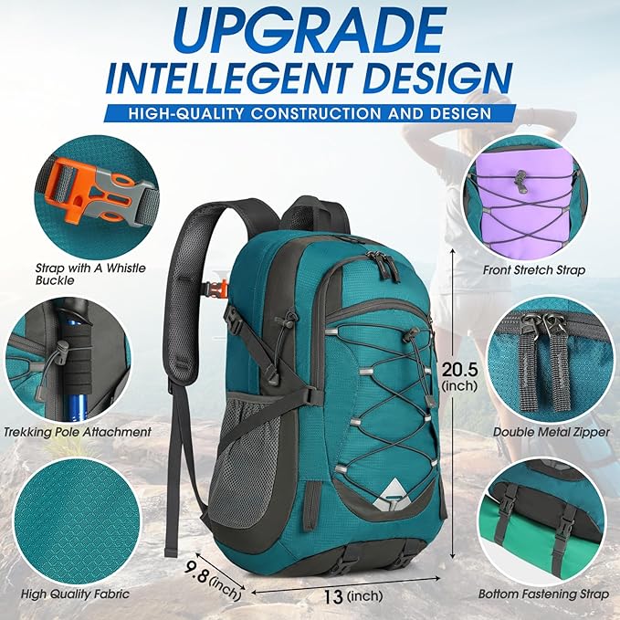 • 【Upgraded Wet Pocket Design】The lightweight hiking backpack stands out with a more user-friendly design that is easy to use. A waterproof wet pocket has been added on the back,and a zipper on the back leads to an internal wet pocket for better separation of sweaty clothes, towels or other personal items after exercise.Effectively separate the items in the water resistant hiking backpack wet and dry.