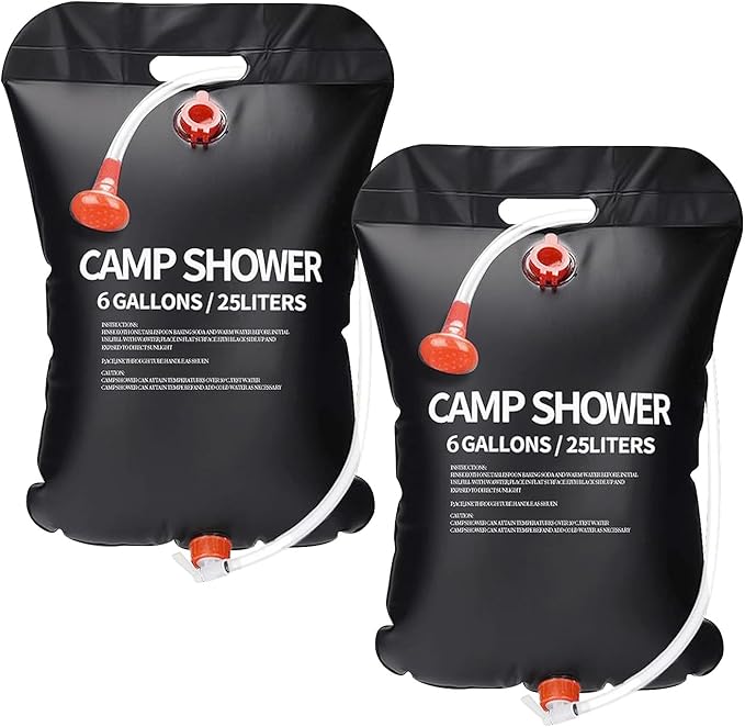JIURUN 2 Pack Solar Shower Bag 6 Gallons/25L Portable Camping Shower Bag with Removable Hose and On-Off Switchable Shower Head,Camping Accessories for Camping Beach Swimming Outdoor Traveling Hiking