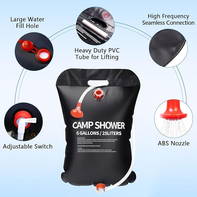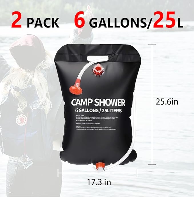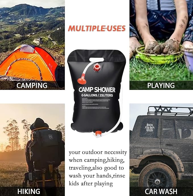 - 【6 Gallons Large Capacities】JIURUN Portable shower bags are available in 6-gallon/25L capacities, enough water for multiple showers for an enjoyable showering experience.