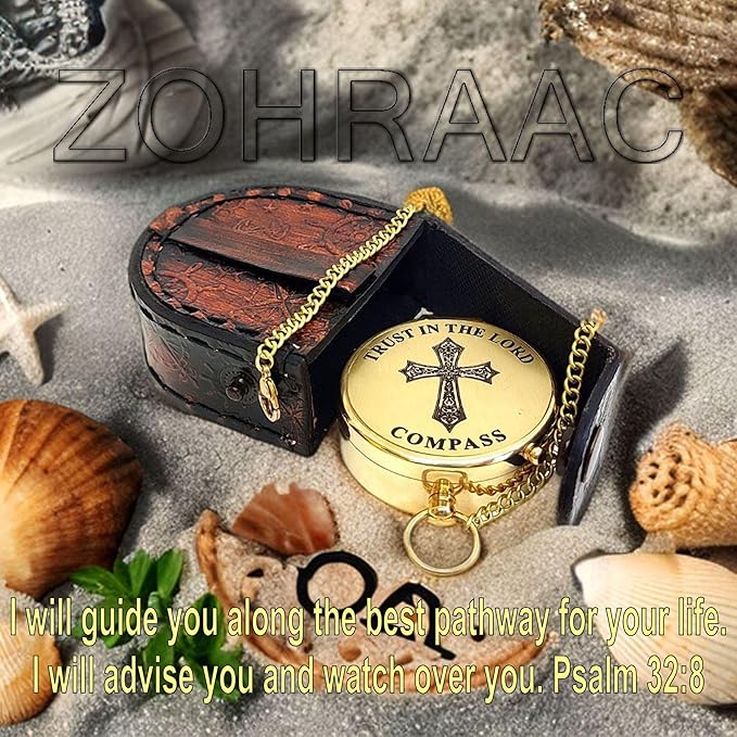- Famous bible quote "I will guide you along the best pathway for your life. I will advise you and watch over you (Psalm 32:8)" is engraved inside the lid of compass.