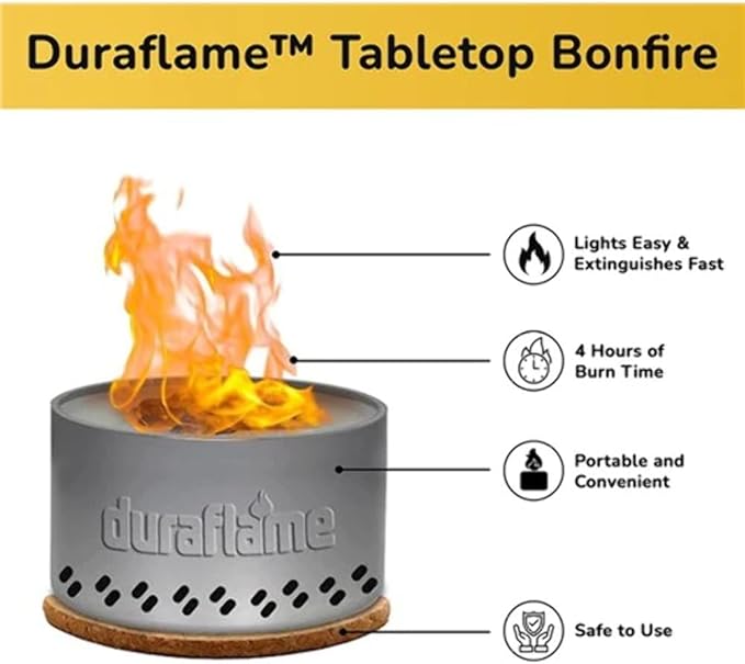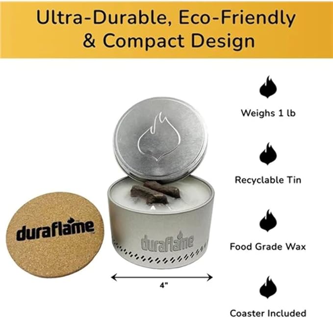 Duraflame™ Tabletop Bonfire & Portable Outdoor Campfire, Fire Pit, Lightweight & Compact, Emergency Fire Kit, Burns up to 4 Hours, Food Grade Wax & Recyclable Tin.