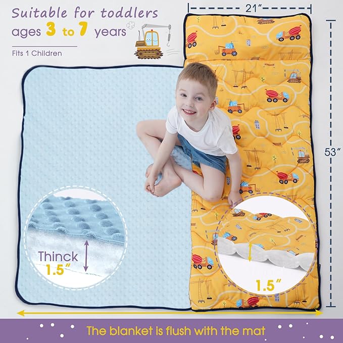 - EXTRA THICK AND COZY SLUMBER BAG: Our Toddler Nap Mat offers extra-thick, cushioned, quilted padding for superior comfort. Perfect for boys and girls aged 2-7 during naptime, rest, and sleepovers at prek, preschool, daycare, and kindergarten