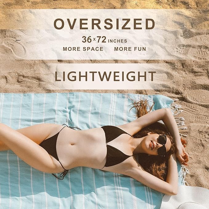 - [Compact And Lightweight]: Designed with your travel needs in mind. This towel is perfect for beach trips, picnics, gym, yoga, hiking, and camping. Its compact size allows you to easily pack it in your luggage or backpack, saving you space and making it easy to carry around. You'll never have to sacrifice comfort for convenience with this lightweight and compact Turkish beach towel.