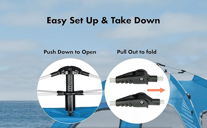 - INSTANT SETUP & PORTABLE DESIGN: Experience effortless deployment! This instant beach tent pops up in seconds and folds down compactly (28"x6"x6") into the included carry bag with ease; designed for single-person setup, making spontaneous beach or park days a breeze