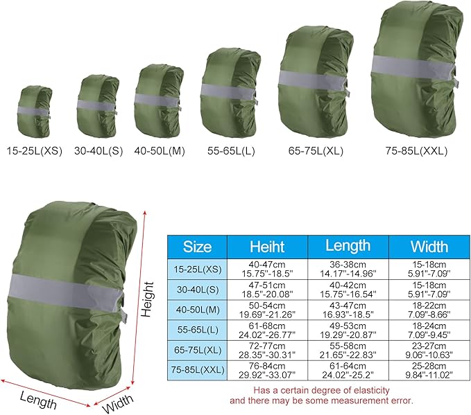 • Instruction: This rain cover fits most backpacks from 15 to 25 liters, ensuring that your gear stays dry in any weather condition.