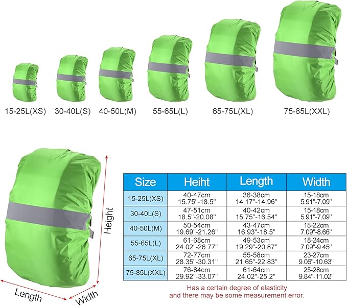 - Instruction: This rain cover fits most backpacks from 15 to 25 liters, ensuring that your gear stays dry in any weather condition.