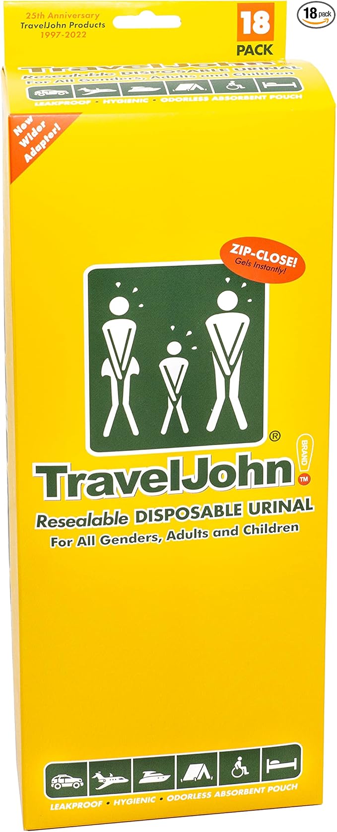 - We upgraded the original TravelJohn design and added a resealable zipper! The resealable zipper allows for safer storage and reuse when on the move.
