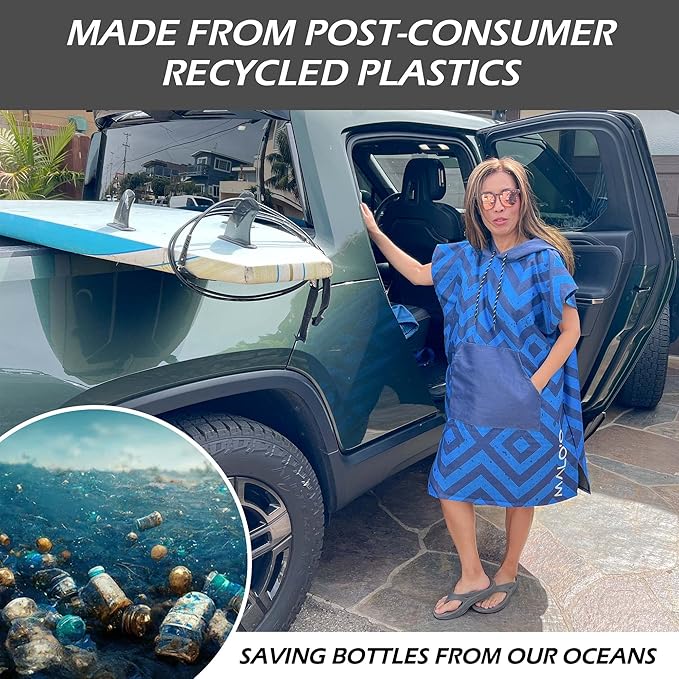 • Eco Changing Poncho is made from Post-Consumer Recycled materials - An absorbent towel for surfing or swimming to keep you cozy, warm, and dry - Swim Parka or Camping Towel and swim robe