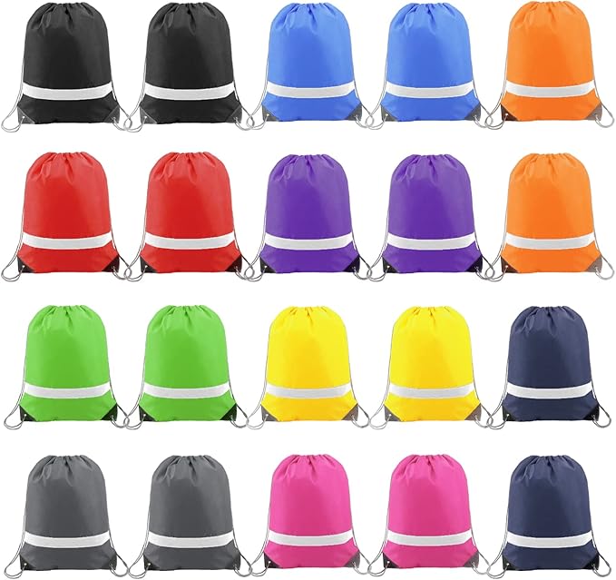 BeeGreen Drawstring Backpack Bags 20,30,50 Packs Reflective String Bags for Gym Sport Trip Cinch Sack DIY for Women Men
