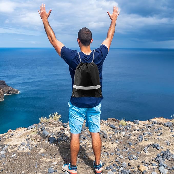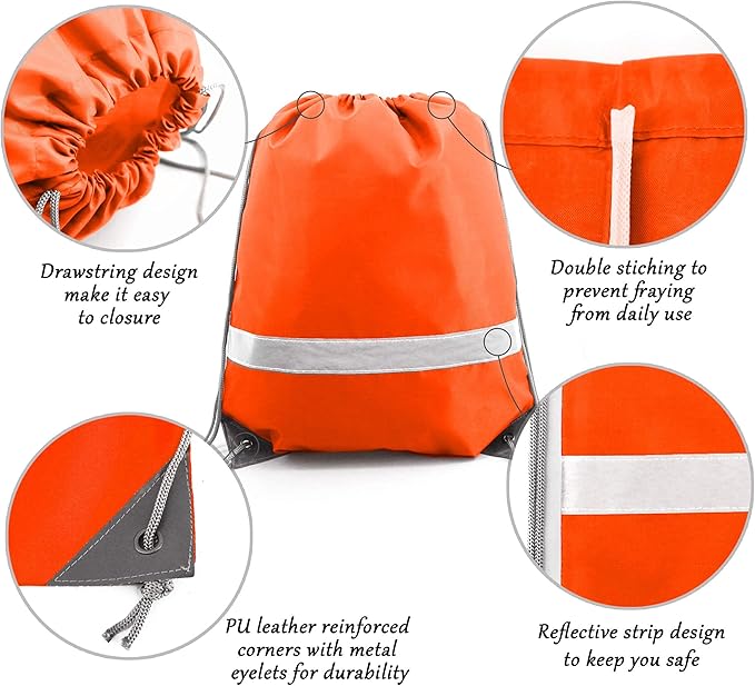 - 【STURDY & EXTRA REFLECTIVE STRIP】-- The bags are very sturdy and withstands daily wear and tear. Double stitches for all seams, making the bag is not easy to fall off and can last long. Our drawstring bags have PU leather reinforced corners, durable drawstring cords, and metal eyelets. These designs ensure that our drawstring bag is more durable. Also, the extra reflective strip can enhance the high visibility to ensure your safety while outdoor in the dark or dusk.