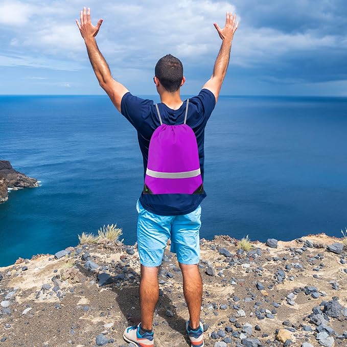 - 【STURDY & EXTRA REFLECTIVE STRIP】-- The bags are very sturdy and withstands daily wear and tear. Double stitches for all seams, making the bag is not easy to fall off and can last long. Our drawstring bags have PU leather reinforced corners, durable drawstring cords, and metal eyelets. These designs ensure that our drawstring bag is more durable. Also, the extra reflective strip can enhance the high visibility to ensure your safety while outdoor in the dark or dusk.