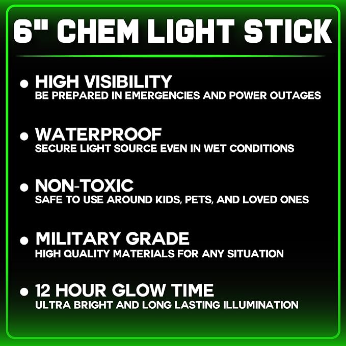 PartySticks Green Glow Sticks Emergency Chem Lights (6", 25 Pack) Military Grade 12 Hour Bulk Tactical Light Sticks for Survival Gear, Camping, Power Outages