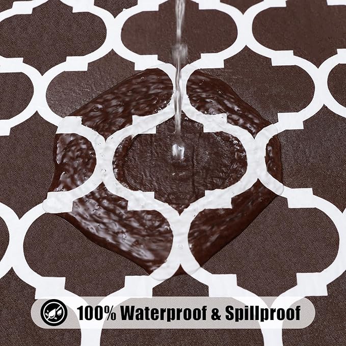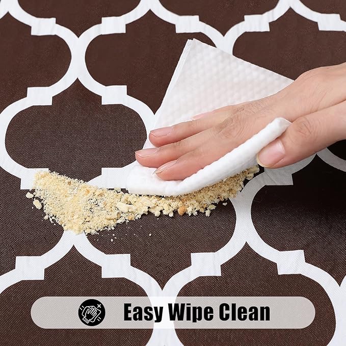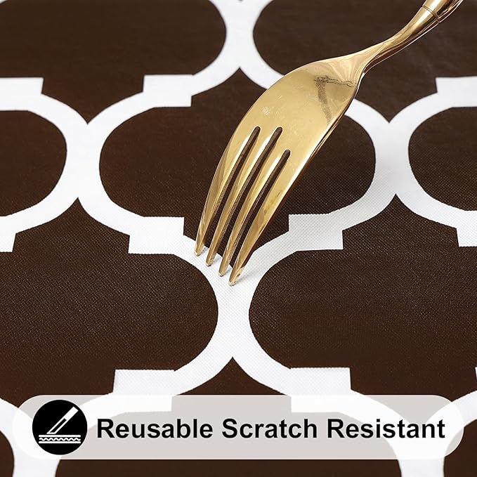- [Waterproof & Wipe Clean] Our table cover surface is made of selected vinyl material, which can effectively waterproof. Spill proof coating makes tablecloth easy to clean, just wipe it off with a damp sponge or rag in a minute.