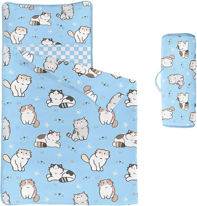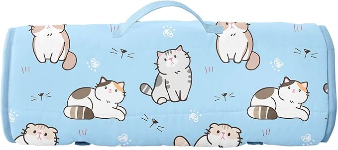 - Portable - a sleeping mat, blanket and pillow. Rolled up easily with hook and loop fastener and convenient carry handle. Perfect for preschool, daycare and sleepovers.