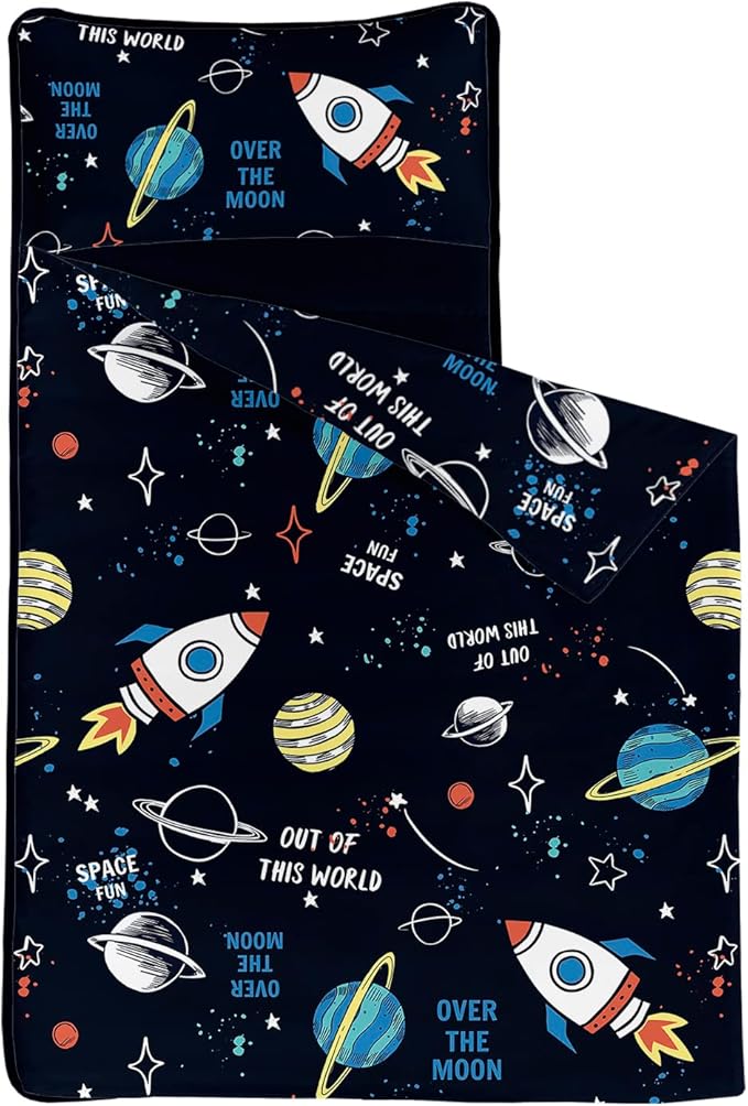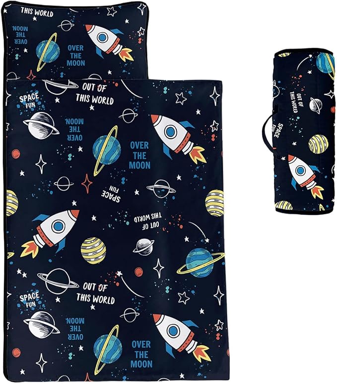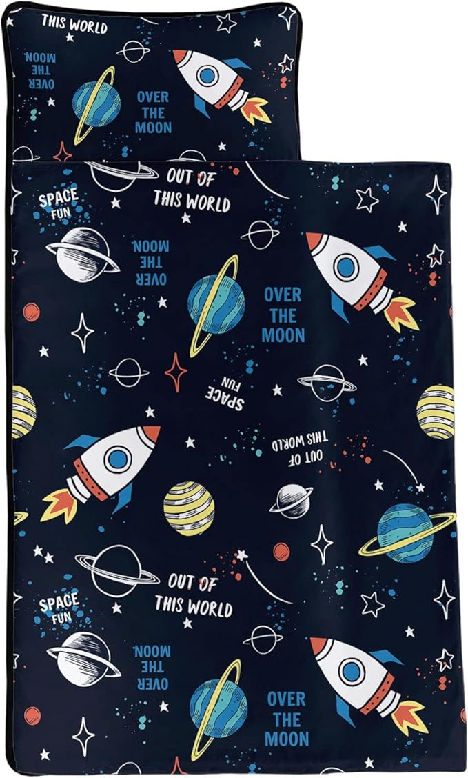 Space Nap Mat - Space Ship Galaxy Sleeping Bag with Removable Pillow - Daycare and Sleepovers Preschool Kindergarten Bedding Set for Kids Toddler Boys Girls