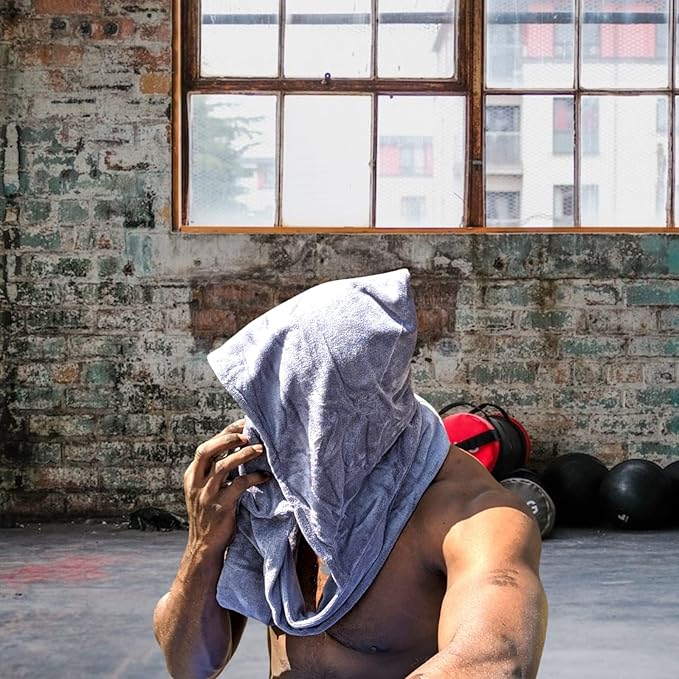 - 𝐇𝐎𝐎𝐃𝐄𝐃 𝐃𝐄𝐒𝐈𝐆𝐍: Our workout sweat towel features a unique hood design that easily drape over your head, providing extra coverage and convenience. Its lightweight construction makes it easy to pack into your gym bag without adding extra bulk.